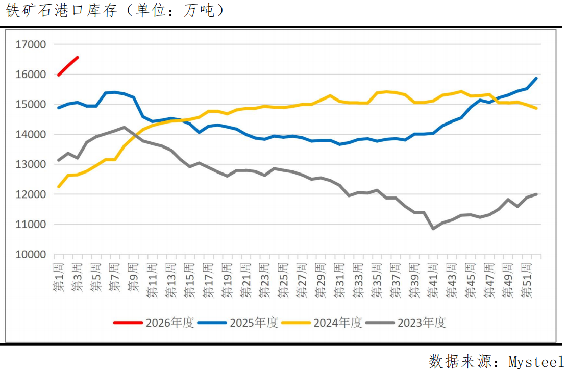短期来看,铁矿石核心矛盾在于“弱现实”的验证。春节前,钢厂虽有一定补库需求,但在利润不佳和成材销售压力下,补库的力度和持续性存疑,难以驱动价格强势反弹。同时,港口高库存将持续对价格形成压制。